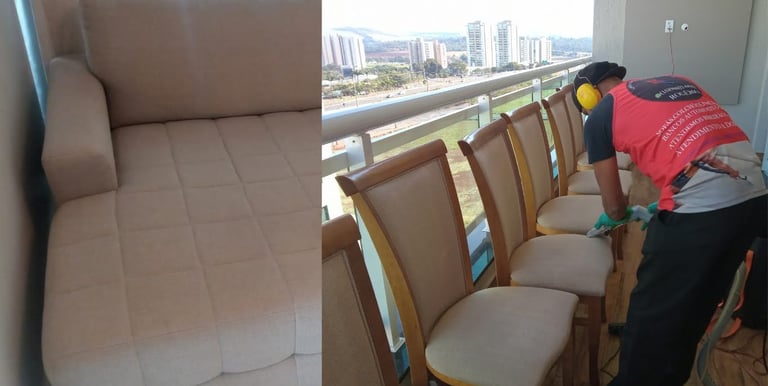 Antes e depois da limpeza que transforma seu estofado.